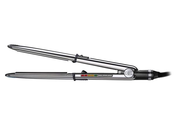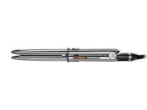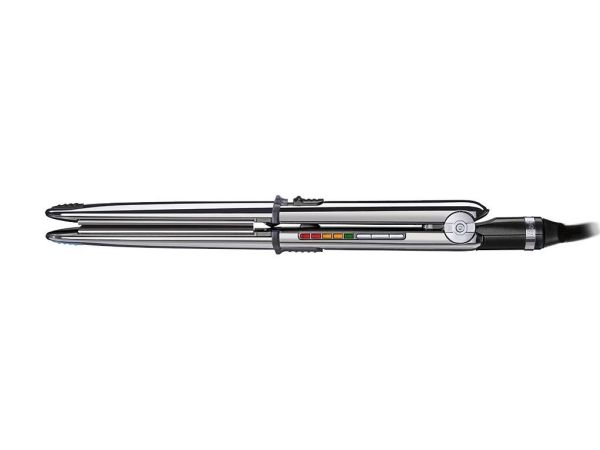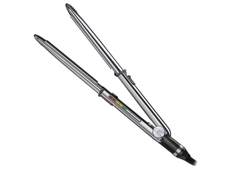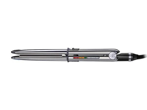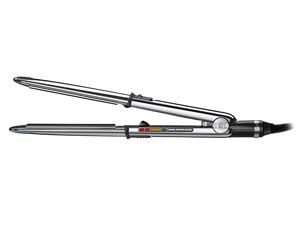 Thanks to a convex design Its exclusive convex design and its ultra-sleek chrome surface make it ideal for straightening and curling hair. Its dual function lets you use it in exactly the same way as you would use curling tongs thanks to its built-in locking system and its outer elliptical form heated by thermal conduction.