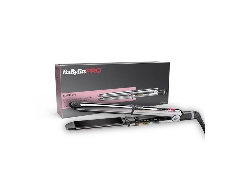 Safety If the styler remains unused for longer than about 72 minutes, the auto shut-off will turn it off; this option increases its lifetime and provides greater safety.BaByliss ELIPSIS3100. Type: Multistyler, Technology: Warm, Control type: Buttons. Product colour: Silver, Housing material: Silicone, Stainless steel, Plate material: Ceramic. Cord length: 2.7 m, Display type: LED, Auto power off after: 72 min. Power: 45 W, Power source: AC. Cable colour: Black, Warranty period: 1 year(s)