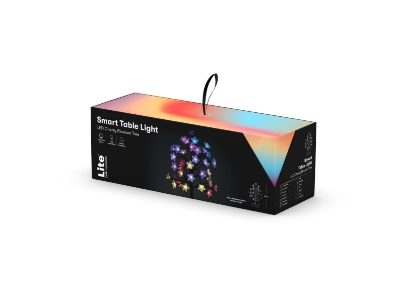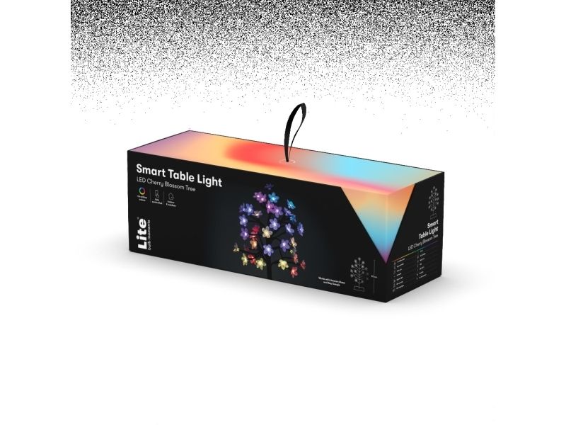 Elevate your living space with the immersive and dynamic light experience of Lite Bulb Moments' Smart Cherry Blossom Tree Lamp. The lamp is a versatile addition to any room setting the ambience how you like it. With 64 million colour combinations and a spectrum of features such as programmable brightness colour and timer settings you can effortlessly express your mood and individual style. Indoor and Outdoor Use 64 Million Color Combinations Fully Programmable Music Sync Capabilities Compatibility with Google and Alexa Indoor and Outdoor Use The Smart Cherry Blossom Tree Lamp is designed for indoor and outdoor use making it the perfect accessory to accentuate your living room children's room or terrace. Instantly invigorate your home with this innovative light experience. 64 Million Color Combinations Unleash your creativity with an astounding 64 million colour combinations. Each light source has this dynamic feature allowing you to curate an environment that reflects your unique taste and mood. Fully Programmable The Smart Cherry Blossom Tree Lamp is entirely programmable whether adjusting the brightness altering the colour setting a timer or creating your scenarios. Manage these settings easily through the TUYA app. Music Sync Capabilities The built-in microphone lets your Cherry Blossom Tree Lamp light up the music and follow the rhythm establishing an immersive and dynamic lighting experience. You can choose from 20 pre-programmed functions with a simple button press at the power supply. Compatibility with Google and Alexa Take convenience to a new level with compatibility with Google and Alexa. Control your Smart Cherry Blossom Tree Lamp through voice commands and if you have multiple lights group them to follow the same command. Package Contains: Smart Cherry Blossom Tree Lamp Power supply (with a button for pre-programmed functions) Specifications: Model No. NSL911995 Voltage: 5V Max power: 10W Color: Multi-color (RGB purple pink etc.) with 64 million different options Size: 36 LED light sources with a 3-meter cord Water resistance: IP65  Lifespan: 30 000 hours