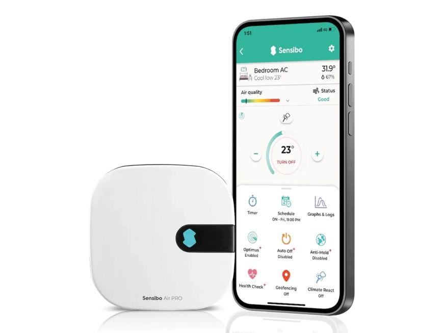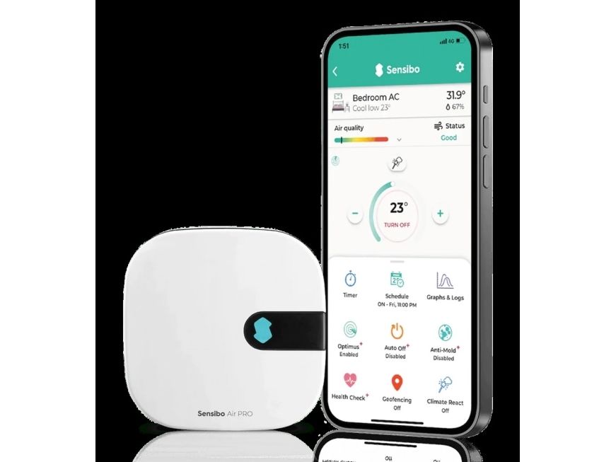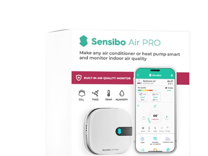 Introducing the Sensibo Air Pro - an intelligent sensor designed to elevate indoor air quality. This little device connects to your air conditioning and heat pump transforming them into first-class air purifiers and gives you a complete overview of the air quality in your home through the Sensibo app.Monitors Indoor Air QualityOffers Remote AC ControlFacilitates Geolocation-based AC ControlComes with Smart Temperature Settings & 7-Day SchedulingCompatible with Leading Smart Home DevicesMonitors Indoor Air Quality The Sensibo Air Pro continually tracks air quality inside your house alerting you to high levels of CO? and TVOC which are common in everyday products. This feature safeguards your health by warning you of harmful substances which can cause headaches fatigue and brain fog. Offers Remote AC Control You can easily control your air conditioning directly from your smartphone at home or miles away. This remote accessibility ensures you always return to a house that's your ideal comfort temperature. Facilitates Geolocation-based AC Control The Sensibo Air Pro has a geolocation feature allowing it to control your AC automatically based on location. It can power on your AC before you arrive and power it off when you leave saving energy and ensuring your comfort. Comes with Smart Temperature Settings & 7-Day Scheduling Manage your home's temperature by using the 7-day scheduling feature. This lets you automate the temperature settings to suit your convenience providing ideal room conditions when you wake up every morning or go to bed each night. Compatible with Leading Smart Home Devices Sensibo Air Pro integrates effortlessly with top smart home platforms like Apple HomeKit Google Home and Amazon Alexa. This means you can control your AC using your favourite voice assistant enhancing the 'smart' in your smart home setting. Package Includes1 x Sensibo Air Pro (formerly Sensibo AirQ) - WhiteInstallation GuideProduct SpecificationsBrand: SensiboColour: WhiteCompatible with any air conditioner or heat pump using remote control.Works with over 10 000 models with an installation process that takes just a minute.Sleeker & smaller designNumerous mounting options