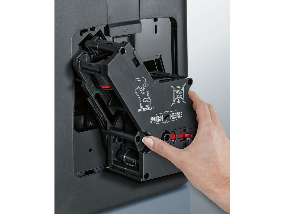The Siemens EQ.6 plus s100 automatic coffee machine delivers a rich experience for coffee lovers with its brewing capabilities. Enjoy an array of beverages including espresso, cappuccino, and latte macchiato, all crafted using a pressure of 15 bar for extraction. The integrated coffee grinder allows for the use of coffee beans or ground coffee, complementing your preferred flavor profile and strength configurations. With a water tank capacity of 1.7 liters and a coffee bean container that holds 300 g, preparing multiple cups of your favorite drink becomes effortless and efficient. Cleaning and maintenance are simplified with dishwasher-safe components, including the milk frother and coffee grounds container, ensuring convenience for daily use. The intuitive LCD display enhances usability, featuring touch-sensitive controls for temperature adjustments and customizable beverage settings. This freestanding model provides versatility and can easily fit into any kitchen layout, making it an ideal choice for those seeking both functionality and style in their coffee experience.