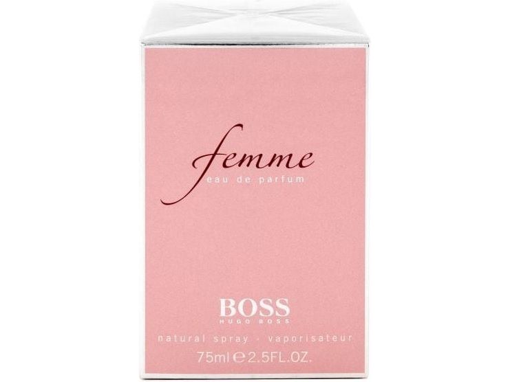 A 75ml bottle of Femme by BOSS eau de parfum. Femme by BOSS. Radiant. Soft. Smooth. Femme by BOSS exudes an aura of captivating femininity. The subtle, lingering warmth of the fragrance is sublimely sophisticated and modern. An enticing experience and the most liberatingly feminine fragrance from BOSS, Femme by BOSS is harmony in a bottle; a scent metaphor for modern femininity. Projected by the fruity top notes of tangerine and blackcurrant, the fragrance is grounded in a creamy, musk-like base. This works with the white floral trio of stephanotis, rose and oriental lily to leave behind just a subtle, warm aura of the scent. Refresh your fragrance options with this irresistible scent.