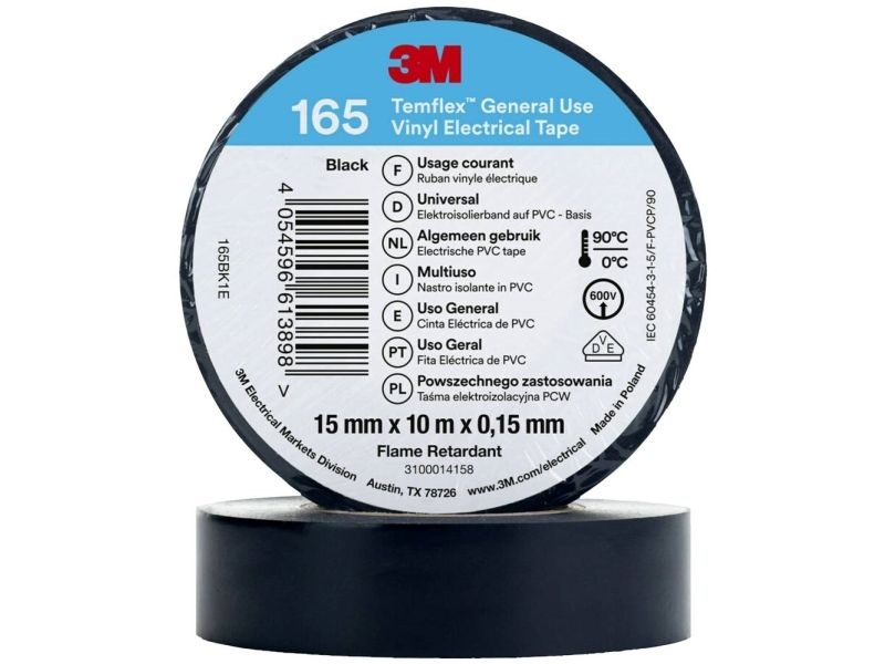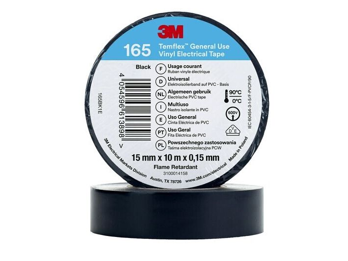 3M Temflex 165 el vinyltape er en 0,15 mm tyk professionel PVC-isoleringstape, der er velegnet til indendørs eller udendørs brug.