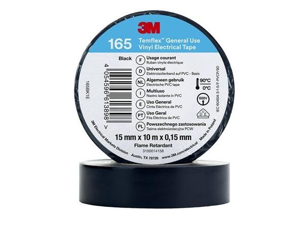 3M 165BK1E, 1 stykker, Sort, PVC, 600 V, Blister, 10 m