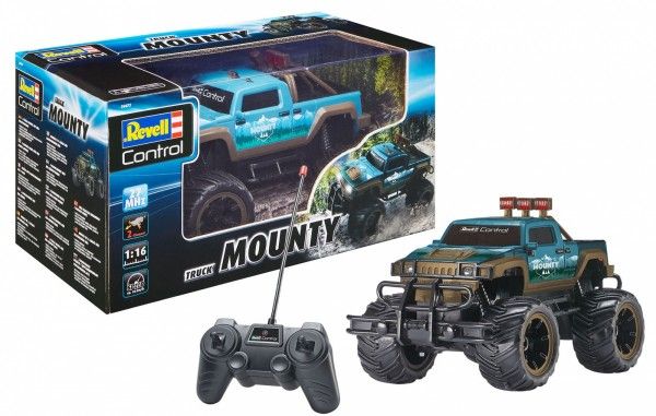 Uanset om det er støv eller ujævnt terræn, når Mounty med sine store, profilerede dæk altid sin destination. Modellen i 1/16-skalaen tilbyder alt, hvad unge RC-ryttere ønsker: et stilfuldt udseende, en kraftfuld motor og en praktisk 2-kanals 40 MHz fjernbetjening Lad os tage på eventyrturen.