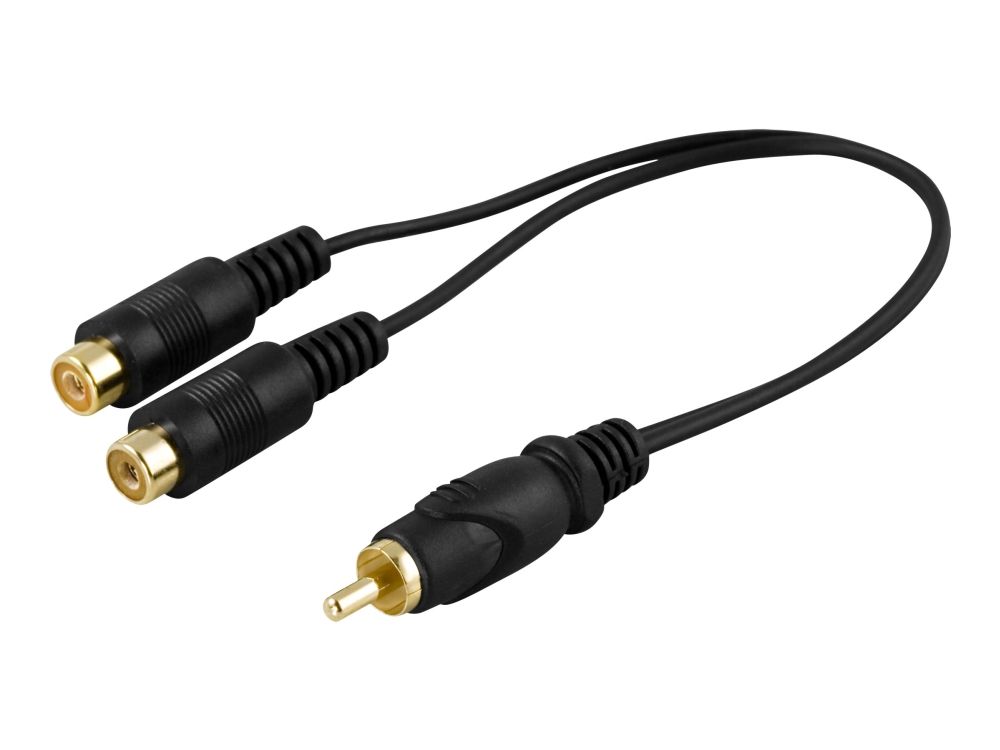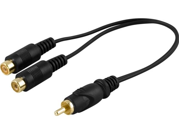 DELTACO - Videosplitter - RCA hann til RCA hunn - 15 cm - svart - formstøpt
