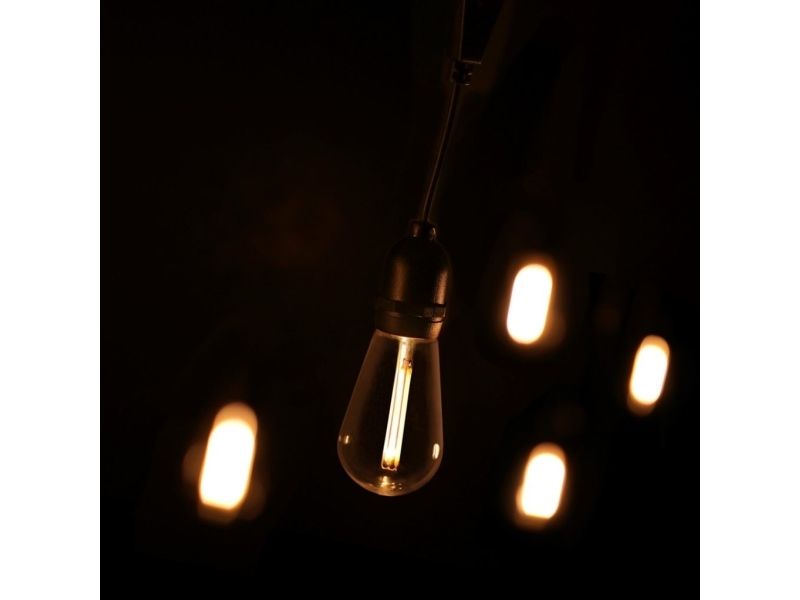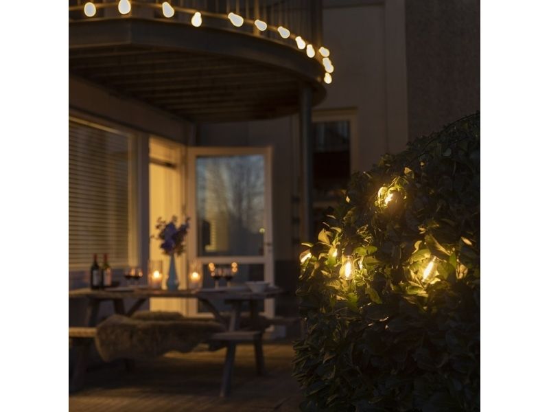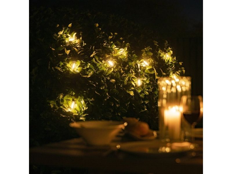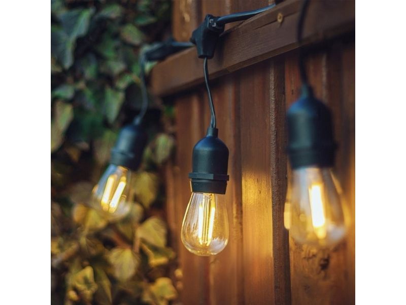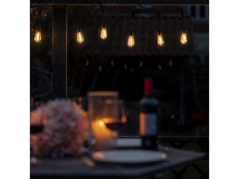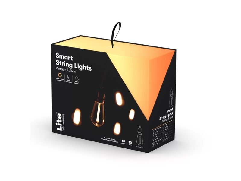 Enhance your outdoors with the Lite Bulb Moments' Smart Light Chain ? Vintage Edison: a merge of modern technology with classic aesthetics designed to illuminate your patio with a warm inviting glow that is easily controlled from your smart devices and compatible with Alexa and Google Assistant. Made from high-quality energy-efficient LED bulbs it can endure the harshest weather ensuring that your nights remain bright and enjoyable. Transform your outdoor space into your perfect evening hangout. Elegant Vintage Design Smartphone Compatibility  Voice Control Functionality Energy-Efficiency and Quality     Waterproof Construction      Elegant Vintage Design  Explore the timeless elegance of Lite Bulb Moments' Smart Light Chain ? Vintage Edison. Its retro design not only enhances the beauty of your patio but also gives it a charming vintage appeal. It's indeed more than just illumination it's a style statement.  Smartphone Compatibility  Bringing the power of control to your palms the Smart Light Chain is easily operable via your smartphone. Connected seamlessly to your WiFi you can manage your outdoor lighting swiftly and effortlessly using the TUYA App. Voice Control Functionality Modifying the way you light your space with the integration of today's most popular intelligent assistants Alexa and Google Assistant. Simply adjust your lighting atmosphere using effortless and hands-free voice commands.  Energy-Efficiency and Quality     While providing optimal performance the Smart Light Chain is just as mindful of the environment. With an energy class F rating the lights utilise minimal energy. It comes fitted with superior Sanan-e LED chips and features ten LED bulbs delivering nothing but high-quality illumination. Waterproof Construction Expect no interruptions with this smart addition to your patio decor. With IP44 and IP65 waterproof ratings for the socket and string lights respectively the Smart Light Chain can consistently deliver a brilliant performance evolving with the changing weather. Package Includes: Smart Light Chain with 10 LED bulbs Handy drawstring storage bag User manual Product Specifications: Energy Class: F rating LED Brand: Sanan-e Waterproof Ratings: Socket - IP44 String Lights - IP65 App Compatibility: Tuya App (available on both the Google Play Store and Apple App Store) Amazon Alexa Google Assistant Weather Resistance: Full Seasons