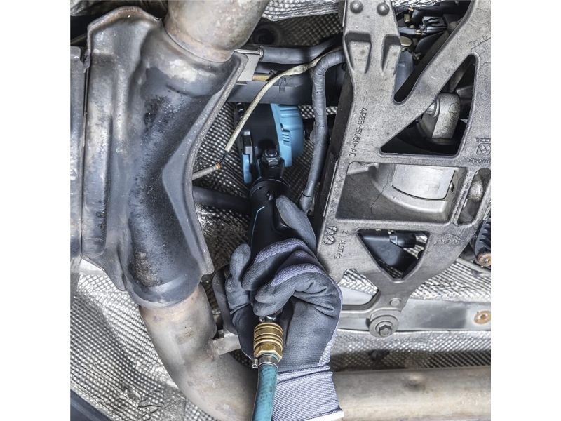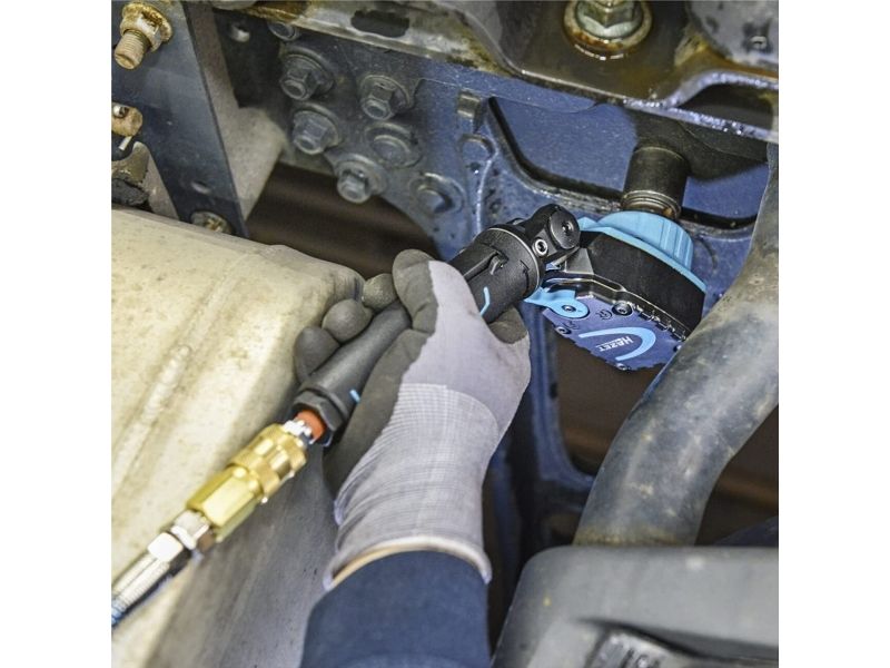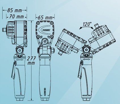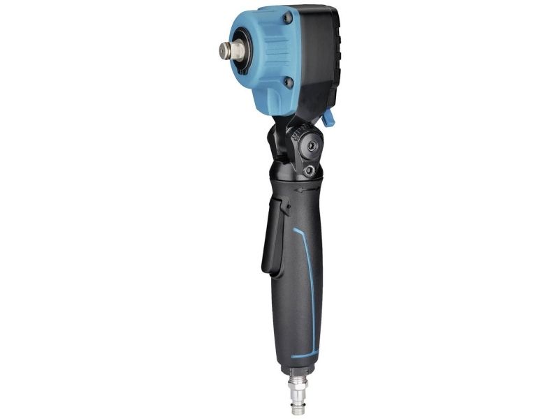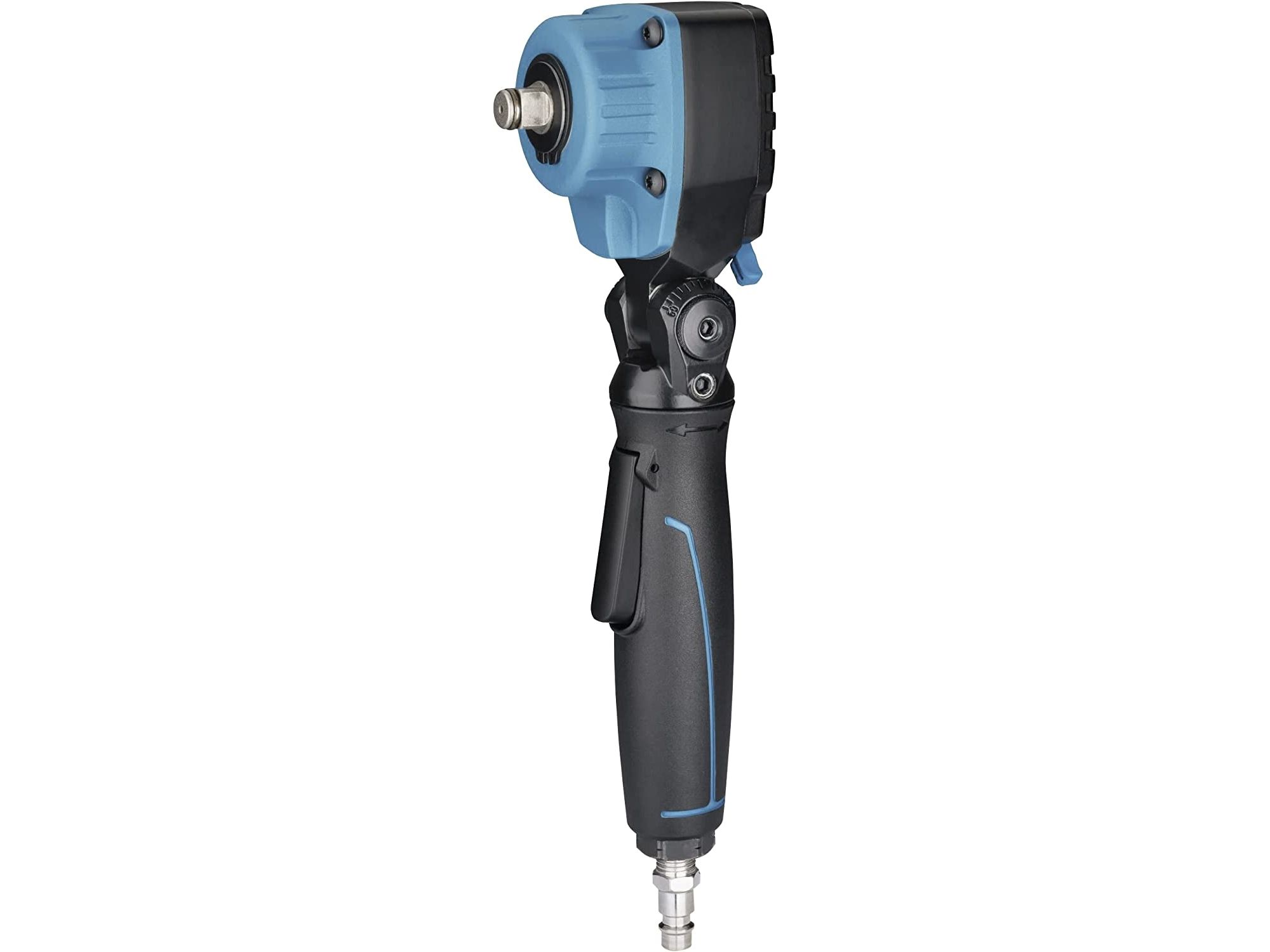 Twin Turbo slagskruemaskine Løsningsmoment maks.: 550 Nm Returluft føres ned gennem håndtaget Vibrationsdæmpet Enkel betjening Håndtag/trigger, der kan indstilles til sin egen aksel for optimal håndtering, muliggør betjening i enhver position Svingmekanisme for udvidet anvendelsesområde garanterer den bedste tilgængelighed Kort, kompakt vinklet konstruktion - kun 70 mm Egnet til både venstre- og højrehåndede Højeffekt-doppelhammer-slagværk Lufttilslutning indtag: Indvendigt gevind 12,91 mm (1/4) Koblingsstik, nominel bredde 7,2 mm Anbefalet drejemoment: 450 Nm Slangediameter (anbefalet): 10 mm Driftstryk (bar): 6.3 Lydeffektniveau (ved driftstryk): 101.1 db(A) lp W. Vibrationsacceleration: 4.89 m/s2. Løsningsmoment (maks.) beregnet med skruestørrelse M: 16 Højre-/venstreløb: Et trin (højre/venstre) Kuldeisolerende greb Nedadgående kraft: Firkant massiv 12,5 mm (1/2 tommer) Mål / længde: 85 mm x 64 mm x 227 mm Tilspændingsmoment maks.: 500 Nm Løsningsmoment maks.: 550 Nm Lyd-trykmåler (ved driftstryk) 90.1 dB(A) LP A. Omdrejninger/minut: 8000 Luftforbrug [l/min]: 113 l/min (1.9 l/sek)