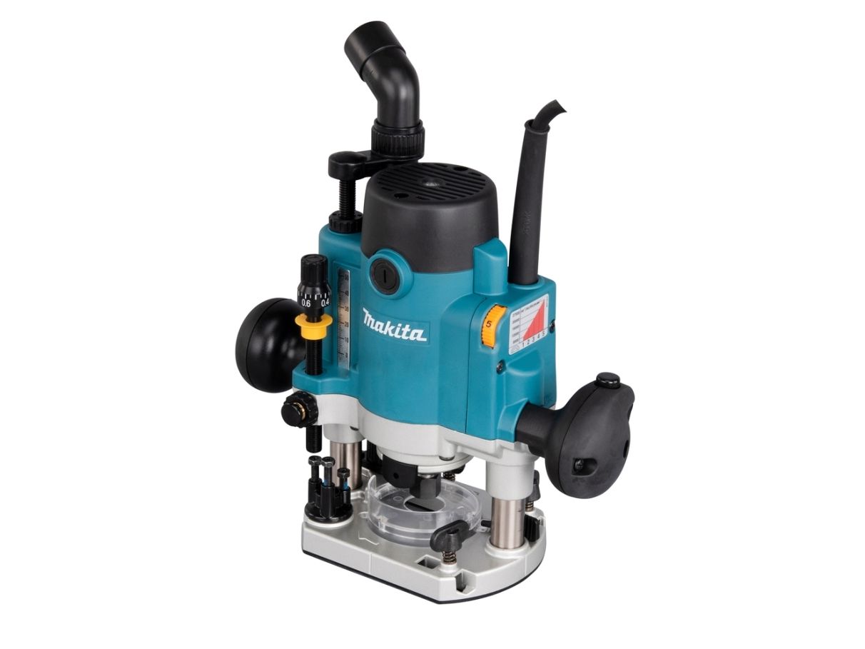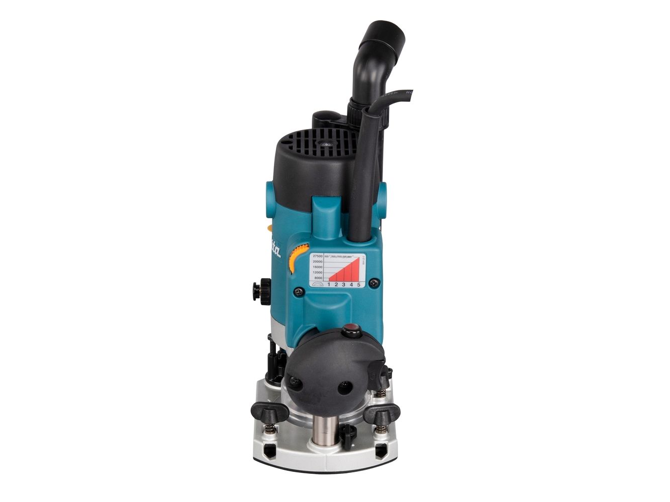 A compact router with a powerful 1,100 W motor for router bits with an 8 mm shank diameter. Practical depth stop lock at the touch of a button and 3-stage turret depth adjustment. With soft start and 5-stage adjustable speed. The anti-restart function prevents the machine from starting unintentionally after a power interruption.