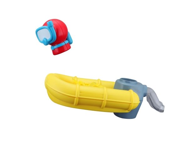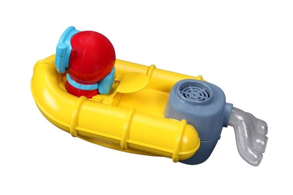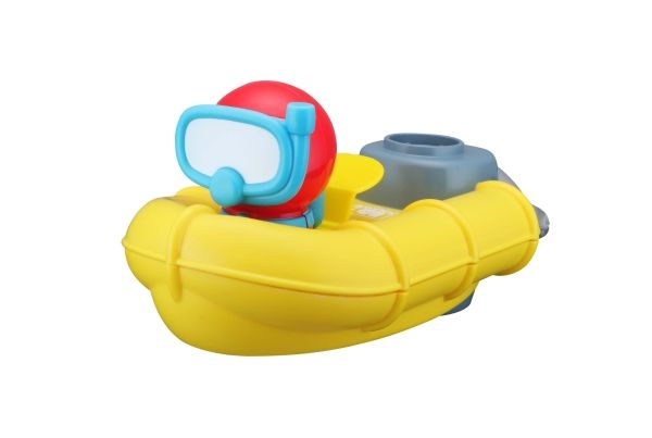 Redningsbåten har mye å se til når den seiler rundt. Bakdelen lager bobler i vannet. Hvis du oppdager nogen som skal reddes, kan du sende ned dykkeren og redde personen. Når båten kommer i kontakt med vann, fanger sensoren det opp og begynner å boble med vannet. Båten vil være en hit i badekaret. Bruker 3 x AAA-batterier (ikke inkludert). Egnet til barn fra 24 måneder.