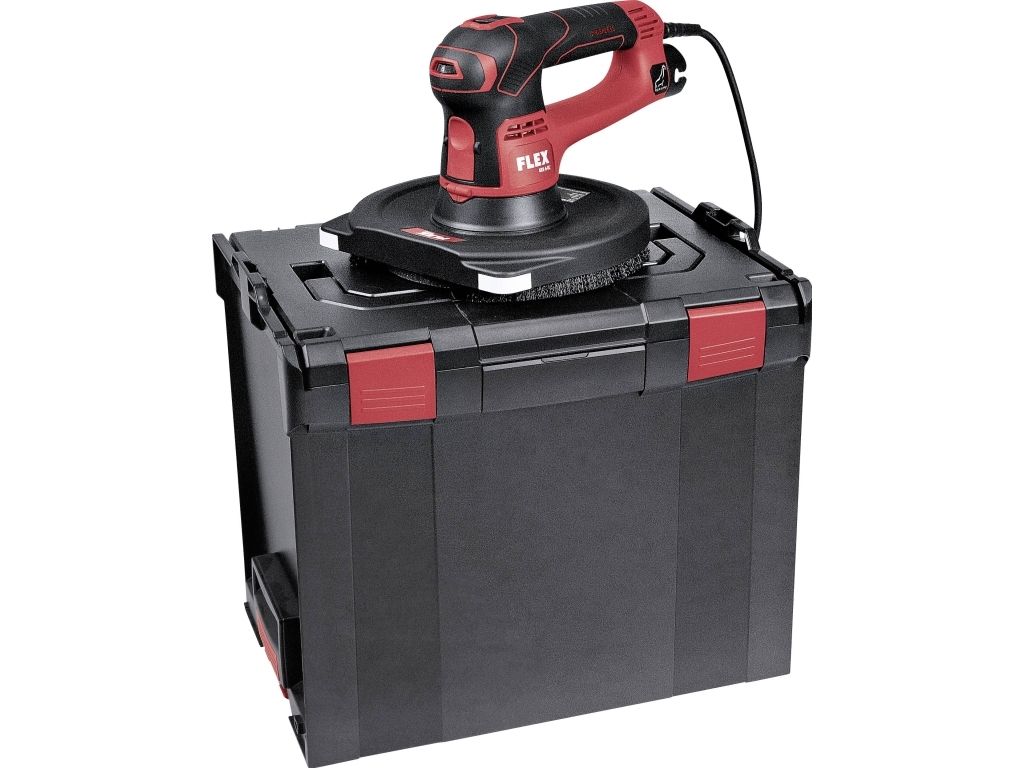 Væg- og loftsliber Handy-Giraf® med skiftehovedsystem Elektronik: Trinløst valg af omdrejningstal, fastholdelse af omdrejningstal, overbelastningsbeskyttelse og temperaturovervågning af børsteløs motor med høj virkningsgrad og længere levetid, komplet støbt elektronikkomponent, forhindrer skader som følge af støv. 3-dobbelt viklingsbeskyttelse reducerer slitage af motoren og forlænger levetiden på grebskappe for behagelig håndtering og præcis føring udstyret med innovativt vekselhoved-system. Slibehoveder kan monteres og fjernes med et enkelt klik segmentslibehoved med drejeligt kantsegment. Det giver mulighed for bearbejdning af overflade-overgange væg/væg og væg/loft. Rotationen foregår uden afbrydelse af arbejdet ved maskinbevægelser. Den effektive sugning mellem børstekrans og slibetallerken forhindrer, at slibemidlet tilstoppes, og sørger for støvfrit arbejde. Slangeføring og effektiv støvudsugning med stort udsugningstværsnit. Sugessugeslange tilsluttes direkte med Flex Flex clip-systemet til maskinen og praktisk til brug på mindre flader, indsnævringer ideel ideal til slibning af gipskarton-, fuldvarmebeskyttelses-fiberplader og til lakeringsforberedelse