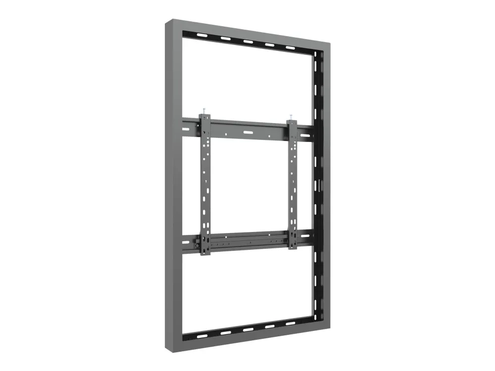 This clean styled black Pro Series enclosure 50" brings flexibility to the digital signage enclosure market while maintaining a sleek aesthetic to complement a variety of environments. A depth-adjustable exterior frame allows for a variety of displays to be used. Reversible hinges help avoid installation and service obstructions, and the exclusive design. Depth-adjustable exterior frame. Unparalleled service and maintenance access. Integrated passive cooling vents with active thermal management options. Designed to compensate for uneven walls, keeping front of frame flat. Tamperproof security hardware protects technology investments.