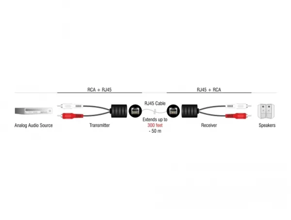 Delock - Audioadapter - RJ-45 hunn til RCA x 2 hann - svart (en pakke 2)