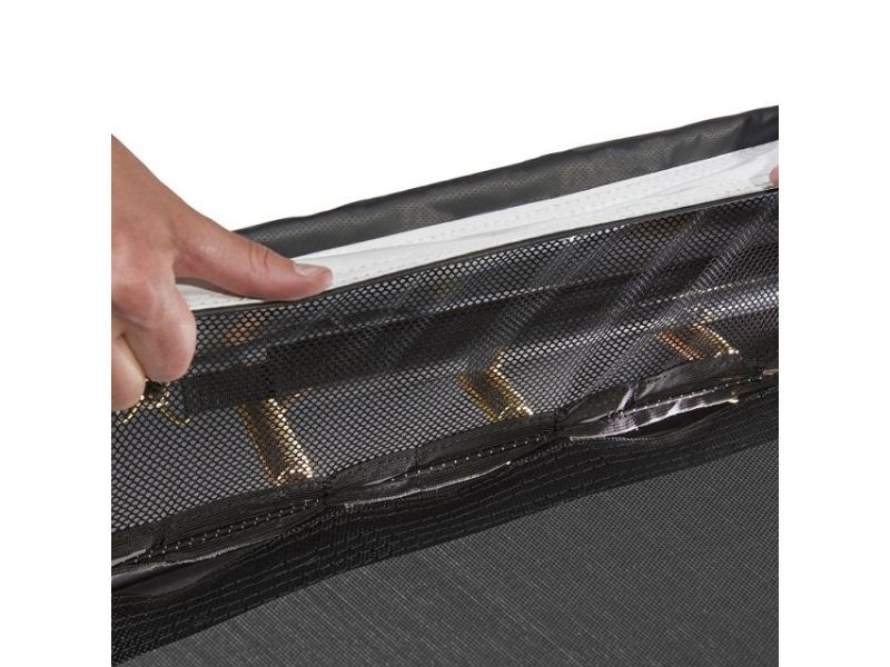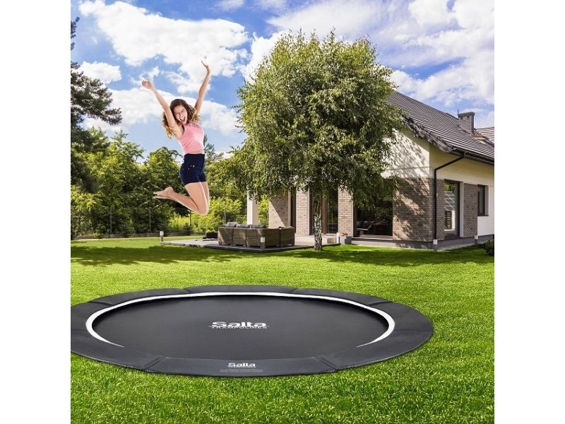 Denne revolutionerende Salta Royal Baseground sports trampolin ligger i samme højde med græsplænen, hvilket gør denne smukke trampolin fuldt integreret i din have. Med det specielt udviklede 'Air Performance System' er luftstrømmen helt optimeret. Denne funktionalitet er afgørende for nedgravet trampoliner og giver den perfekte hoppekomfort. Dette giver Salta Royal Baseground en enestående springoplevelse, og på grund af dette system er trampolinen også meget lydsvag. Udvendigt er denne trampolin er udstyret med robuste paneler, der giver et stabilt fundament. De holdbare metalrammer er dobbeltgalvaniserede og forsynet med en sort belægning for at forhindre oxidering. Kantmåtten har også et net-system, der skal monteres til trampolinmåtten. Dette gør det umuligt for børn at komme i kontakt med fjedrene. Alle disse unikke egenskaber gør denne Salta Royal Baseground til en absolut topkvalitets trampolin, der giver mange års underholdning! Sports trampolinen er ekskl. sikkerhedsnet og henvender sig til teenagere og voksne. Kun godkendt til børn, hvis der tilkøbes et sikkerhedsnet (EN 71-14).