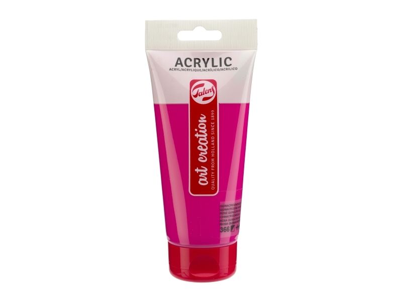 Talens Art Creation acrylic colour is a reliable quality acrylic paint based on acrylic resin. The paint has a pasty consistency, dries quickly and has a silky gloss when dry. These acrylic colours can be used both straight from the tube and thinned with water and are waterproof when dry. The colours are easy to mix with one another and easy to use due to their dosing cap.