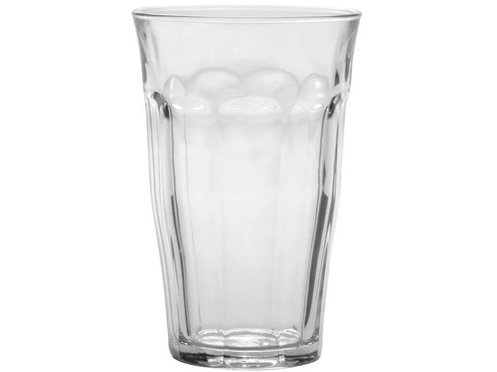 Slagfast og hærdet glas fra Duralex, der er designet til at være behageligt at holde i hånden, med facetter, der reflekterer lys og fremhæver drikken.