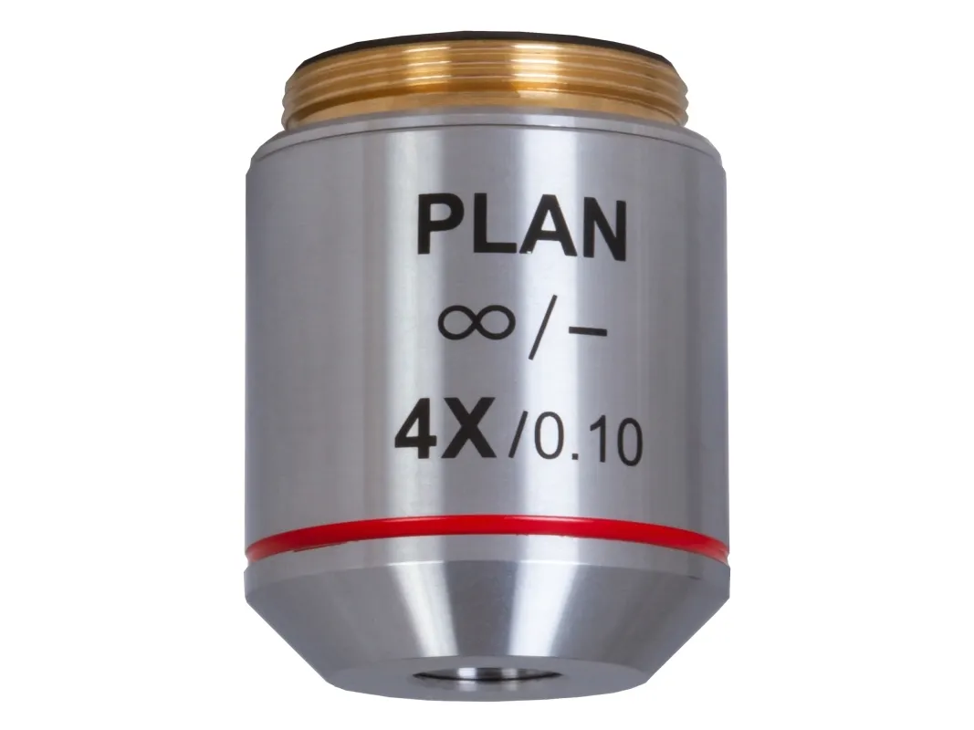 The Levenhuk MED 4x infinity plan achromatic objective is specially designed for infinity-corrected microscopes (their tube length is adjusted to infinity). These are professional optical instruments that are used in laboratories. The main advantage of the infinity-corrected optical system is the ability to install any additional parts, e.g. polarizers.
