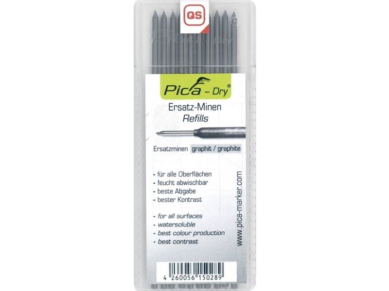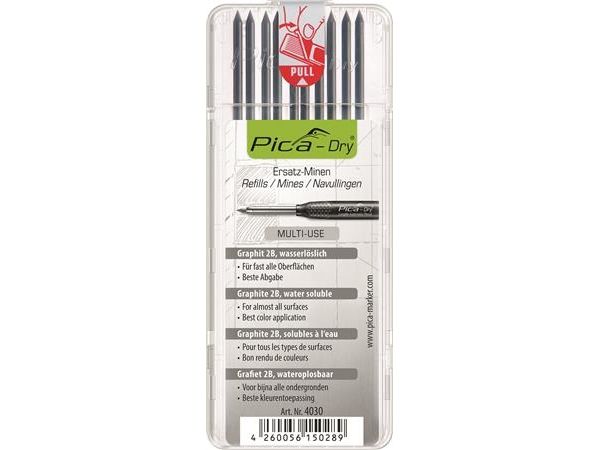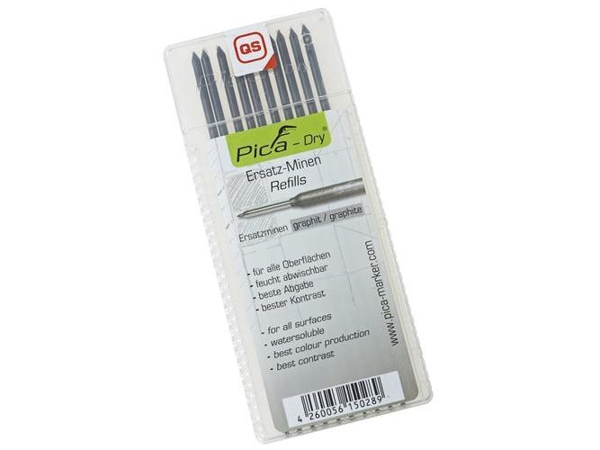 Refill stifter til PICA dry dybhulsmarkør, Grafit stifter i samme hårdhed som almindelige tømrerblyant. Med 10xgrafit