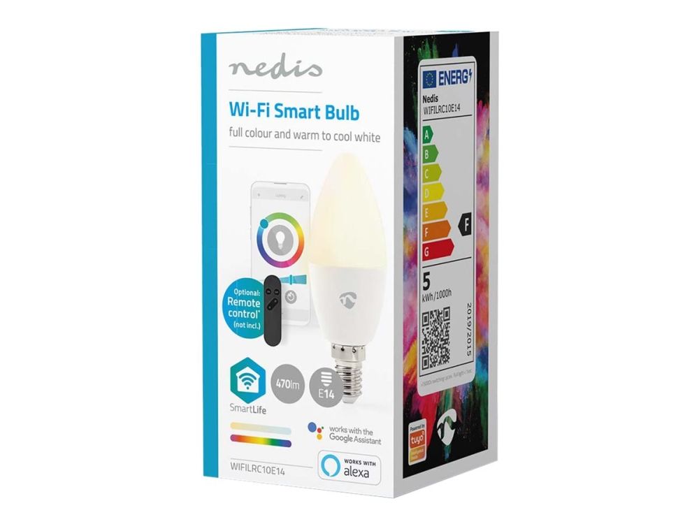 Nedis SmartLife - LED-lyspære - form: stearinlys - E14 - 4.9 W (ekvivalent 40 W) - klasse F - RGB/varmt til kjølig hvitt lys - 2700-6500 K - hvit