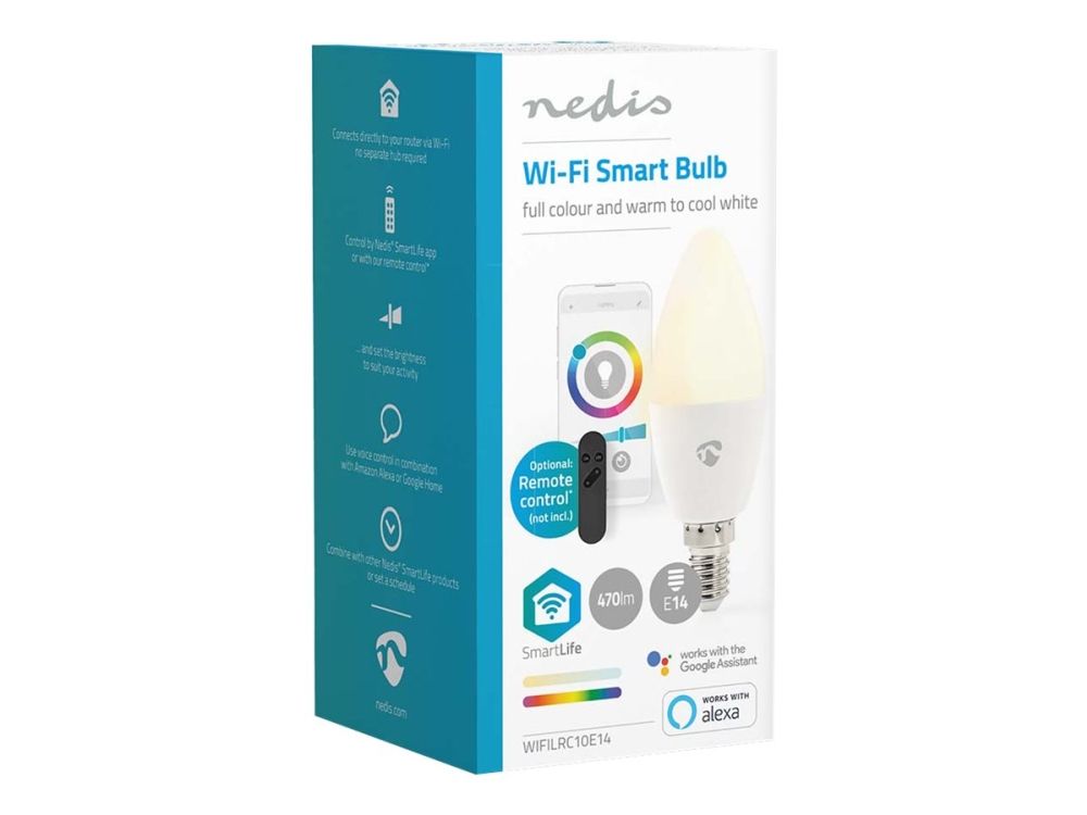 Take control of your lights with this smart bulb that connects directly to your wireless/Wi-Fi router to offer remote control as part of your home automation system. You can control the bulb’s colour and brightness with the Nedis SmartLife app or link the bulb to Google Home or Amazon Alexa to operate it with your voice. For more convenience, you can also use the Smart remote control to easily turn the Smart Bulb on and off or adjust its brightness.