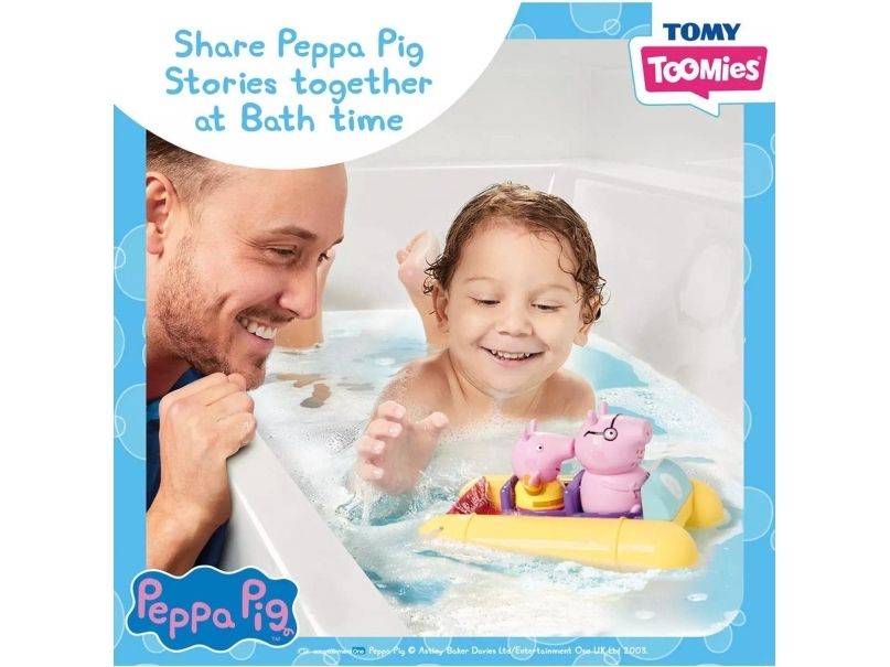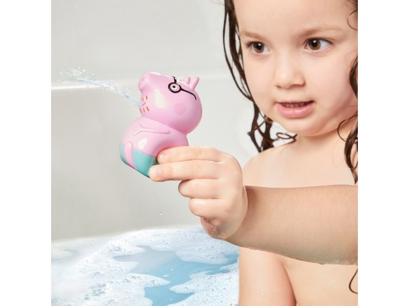 Peppa ogPappa Gris sitter trygt om bord til det er på tide å dykke inn. Hver av dem er en myk og squidgy vannsprøytende figur – dypp disse Peppa Gris-lekene i badekaret eller i et plaskebasseng, klem figuren for å "fylle" med vann, og klem igjen for å sende spruter av vann ut av munnen deres! Som andre i Toomies-serien av førskoleprodukter, vil dette pedalo Peppa Gris-lekesettet underholde og lære barnet ditt mens de vokser gjennom viktige læringsstadier.