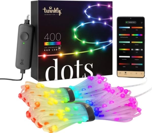 Twinkly Dots bring a new level of customization and control to your lighting decor. With 400 addressable RGB LEDs, these string lights offer a wide range of colors and patterns, all controllable via the Twinkly app, voice commands, or even remotely. Designed for both indoor and outdoor use, they are waterproof and energy-efficient, making them perfect for any setting or occasion. Whether you're looking to enhance your gaming setup with OMEN Light Studio and Razer Chroma RGB compatibility or want to create the perfect atmosphere for your next party with music-responsive lighting effects, Twinkly Dots have you covered. Their integration with leading intelligent assistants like Alexa, Google Assistant, and Homey ensures that they can easily become a part of your smart home ecosystem, providing convenience and a touch of magic to your daily life.