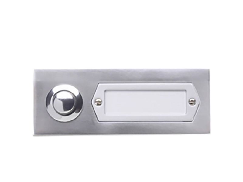 ETA 501 GA - etageplade: Aluminium sølv eloxeret EV1; maks. 12 V AC/DC (1,5 A) min.: 5 V (1 mA); overflademontering; 1 dørklokkeknap enkeltrække; 38 x 98 x 15 mm.