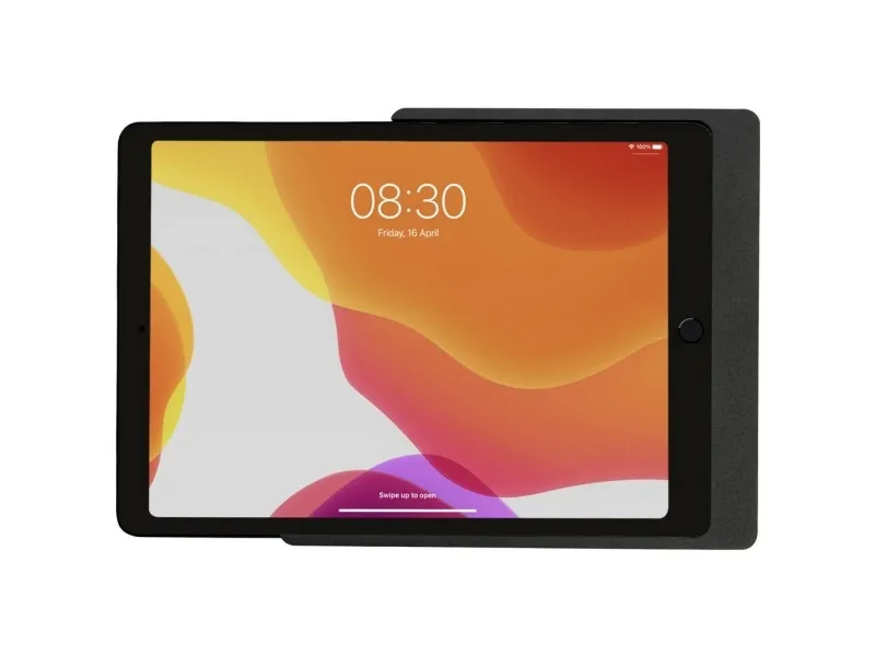 Companion Wall Home til iPad 10.2 USB-A Black Powder Coated Rotation Unit, USB-strømforsyning, PoE adapter - bestilles separat Companion Wall Home er en smart , side-åben, asymmetrisk tablet-vægholder. Den er fremstillet af højkvalitets, præcist fræset aluminium med pulverbelagt overfladeforædling. Den eksklusive tablet-vægholder fra Displine forener moderne design og fleksibilitet. Den åbne side giver nem udtagning af tablet-pc'en og assimetrier design giver et attraktivt look.
