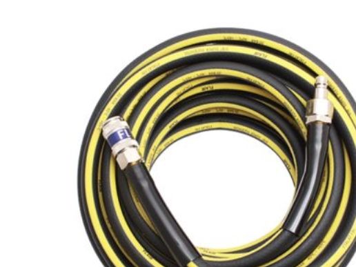 Super flex trykluftslange af polymer/gummi komposit med fletforstærkning.