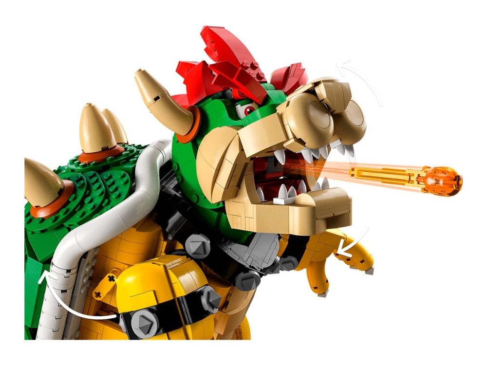 Flere positurer – styr Bowsers hode- og halsbevegelser med en knapp under skallet hans, åpne og lukk munnen hans, beveg armene, hendene, bena og halen og aktiver ildkulekasteren