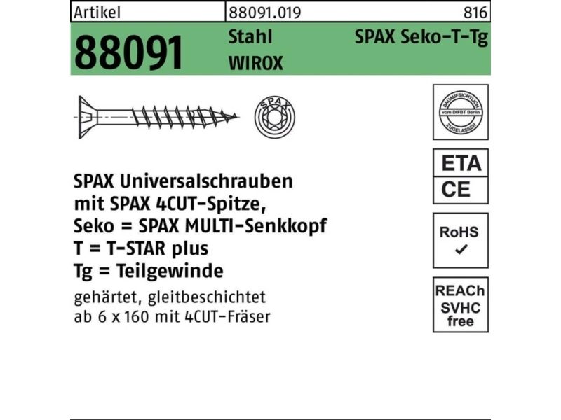 SPAX 0191010601005, Skru, Metall, Zink, Tre, Flathode, Torx, Metallisk