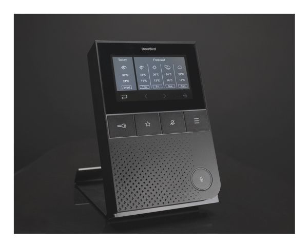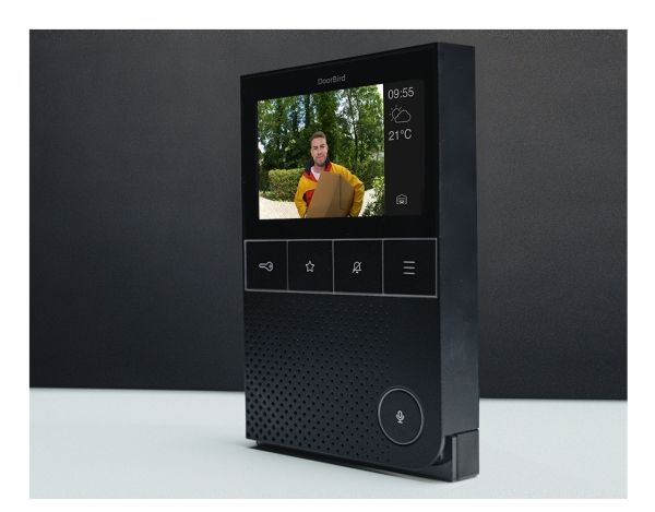 DoorBird IP video indendørs station er det ideelle supplement til enhver DoorBird IP video dørstation. Den udmærker sig ved en fremragende video- og lydkvalitet. Det kompakte og elegante design harmonerer med alle omgivelser. Skærmen på indendørsstationen består af ridsefast Gorilla® sikkerhedsglas. Med den intuitive brugergrænseflade med klare symboler kan alle funktioner nås på få sekunder. Alle hovedfunktioner kan kaldes frem via hardwaretasten - uden brug af berøringsskærmen. Derved er betjeningen • intuitiv og komfortabel • Egnet til hver aldersgruppe • Mulig med handsker.På den individuelle ringetone til hoveddør, etage eller mål kan du præcist skelne, hvor den besøgende ringer på. Led-statuslinjen på undersiden af indendørsstationen lyser derved i frit valgbare farver. På mindre end 10 minutter er den indendørs station klaret. Tilslutning til netværket sker via WLAN eller netværkskabel. Hvis den indendørs station tilsluttes via netværkskabel, kan den komfortabelt forsynes med strøm via Power over Ethernet (PoE). Hvis internettet svigter, vil alle indendørs DoorBird dørstationers funktioner blive bevaret inden for det lokale netværk. Via internettet kan den indendørs station få adgang til alle tilsluttede DoorBird dørstationer - overalt i verden. Hvis der anvendes mere end en indendørs station, understøttes rum-til-rum-kommunikation mellem alle indendørs stationer. Også en SIP-telefon kan ringes op med et tryk på en knap for eksempel at forbinde en Concierge eller viceværter. Det er også muligt at foretage opkald fra SIP-telefon til indendørs station og dørstation.