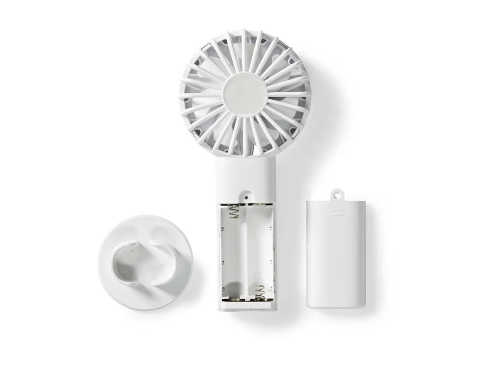 The Nedis FNHH1WT is a versatile tabletop cooling fan designed for personal comfort. With a compact form factor and lightweight construction, this fan is easy to transport, making it ideal for various settings, whether at home or on the go. The fan features two speed settings, allowing users to personalize their cooling experience. Its operation is simple thanks to a push button control, and it is powered by standard AA batteries, making it convenient when a power outlet is not available.