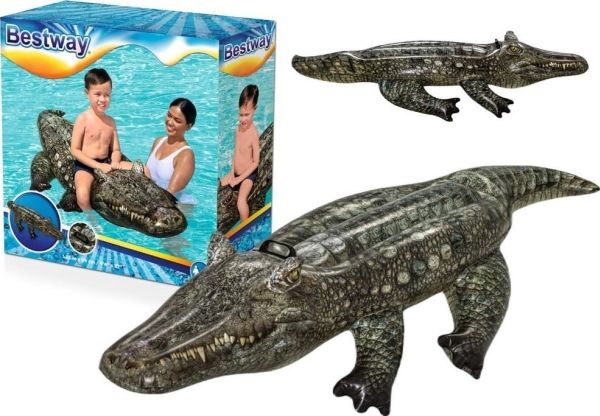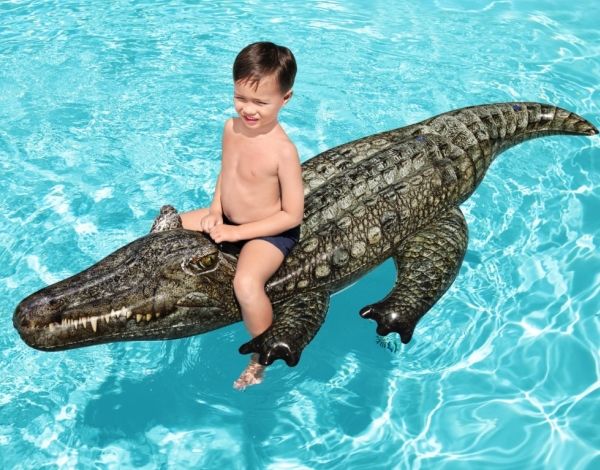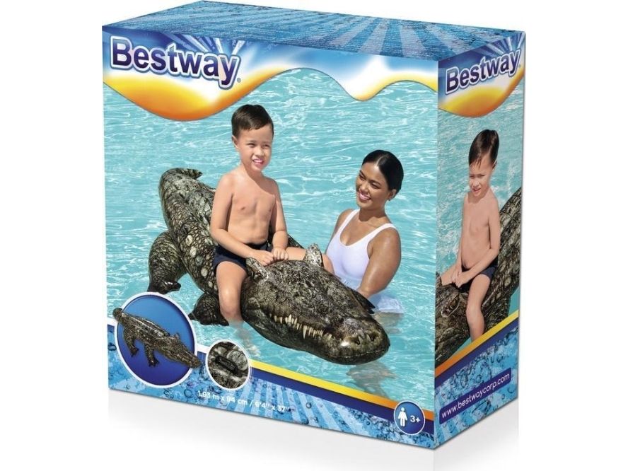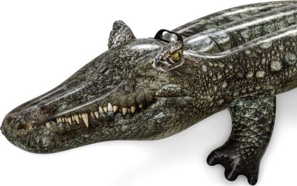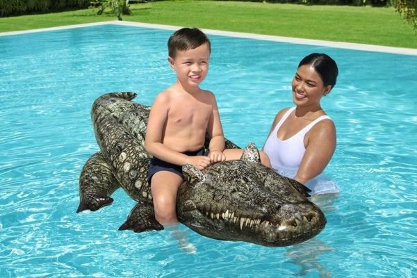 Take a ride on the wild side with the Bestway Realistic Reptile Kids Ride-On Pool Float! At over 1.93 meters long, this reptile is a nature lovers fantasy. With its heavy-duty handle, holding on to this wily beast in the pool or at the beach is super easy. Kids will command the water atop this stunning creatures back. Crafted from trusted materials, this ride-on is sure to cause excitement at the pool, lake or beach. Kids will be wowed by its authentic color and scaly printing, its sharp teeth, and predatory eyes set up and on the sides of its head. And with its easy inflation, deflation and storage, the Realistic Reptile Ride-On will bring joy to your summer year after year. Perfect for pool parties, beach photos and social media. Tame a little piece of the wild and let these eye-catching graphics snap up the attention all summer long.