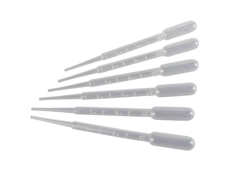 Set of 6 pipettes with ml scale for dosing paints and thinners precisely.