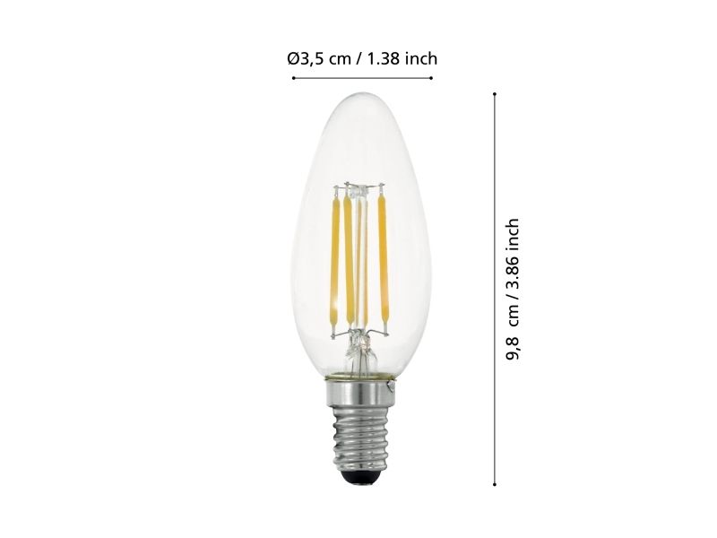 Eglo - LED-filamentlyspære - form: C35 - E14 - 4.5 W (ekvivalent 40 W) - klasse F - varmt hvitt lys - 2700 K - gjennomsiktig