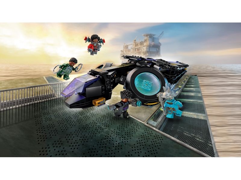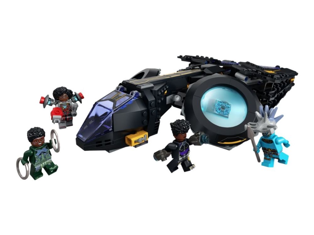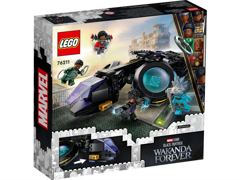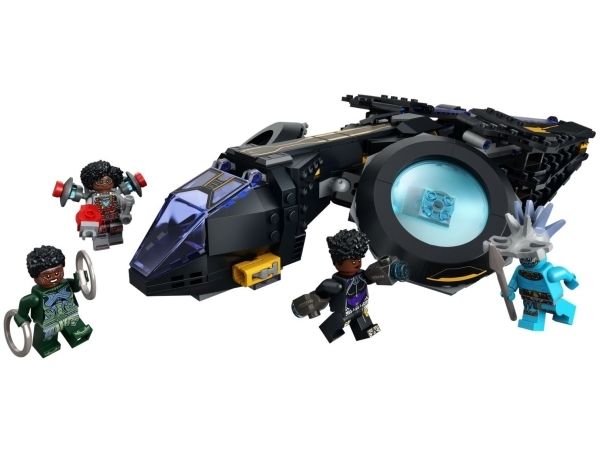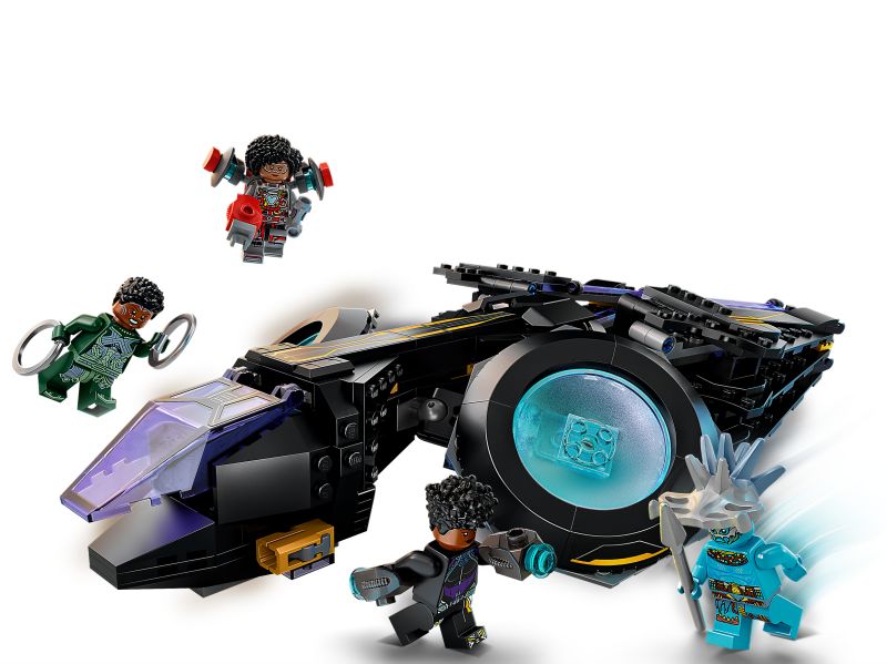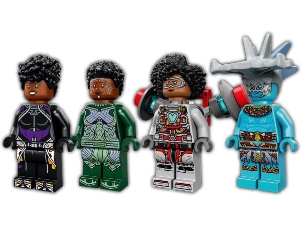 2. Fire figurer – inkluderer minifigurer av Shuri, Ironheart MK1, Nakia og Attuma samt et spyd, stridsringer og jetpack. Den byggbare Sunbird-modellen har to knotteskytere, roterbare motorer og bevegelige vinger