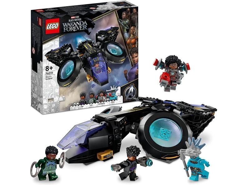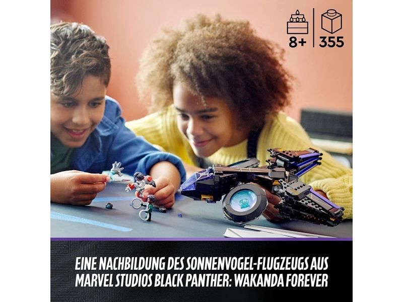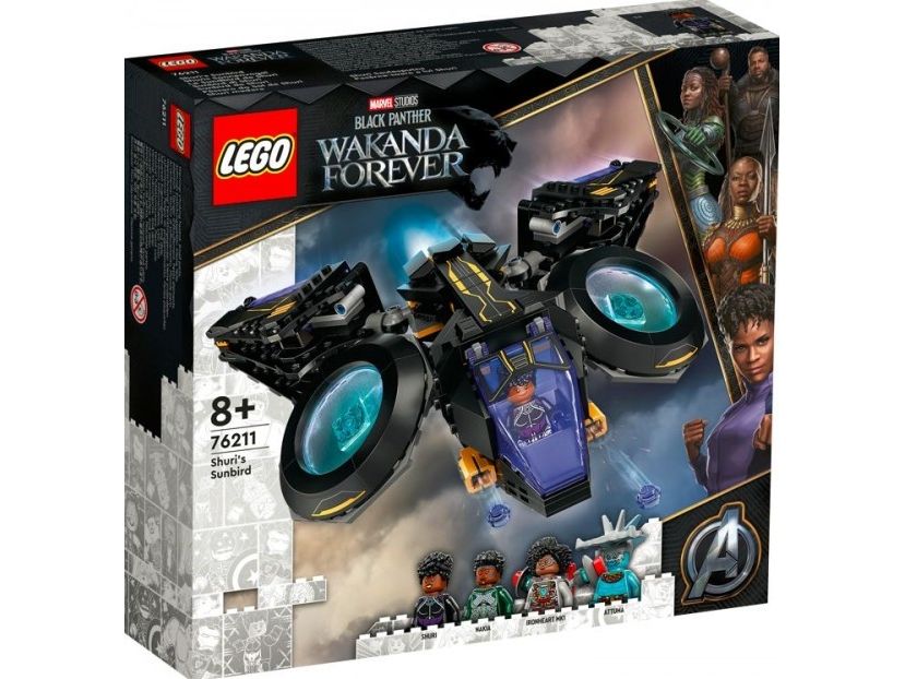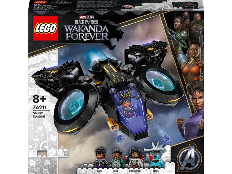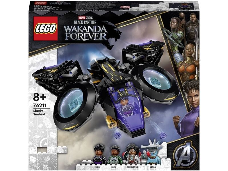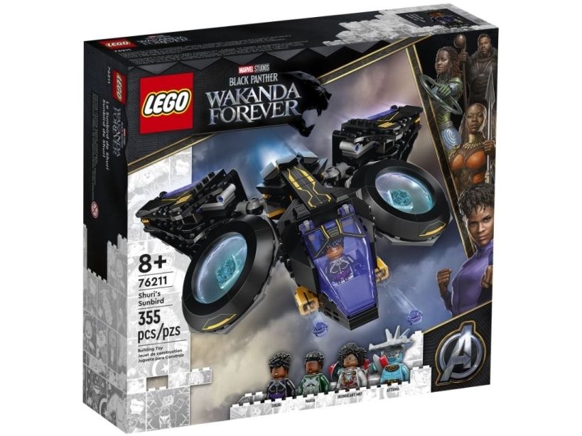 Dette imponerende luftfartøyet er en autentisk kopi av Sunbird – det fantastiske flyet til Shuri fra Marvel Studios-filmen Black Panther: Wakanda Forever. Dette mektige superhelt-flyet har to store motorer montert på kuleledd, som barn kan vippe og rotere i ønsket vinkel. Hengslene gjør at vingene kan vendes forover eller bakover, bakpå har fartøyet et oppbevaringsrom til Shuris knyttnevevåpen og foran er det montert to knotteskytere. Settet inkluderer minifigurer av Shuri, Ironheart MK1, Nakia og Attuma med tilhørende våpen og tilbehør.