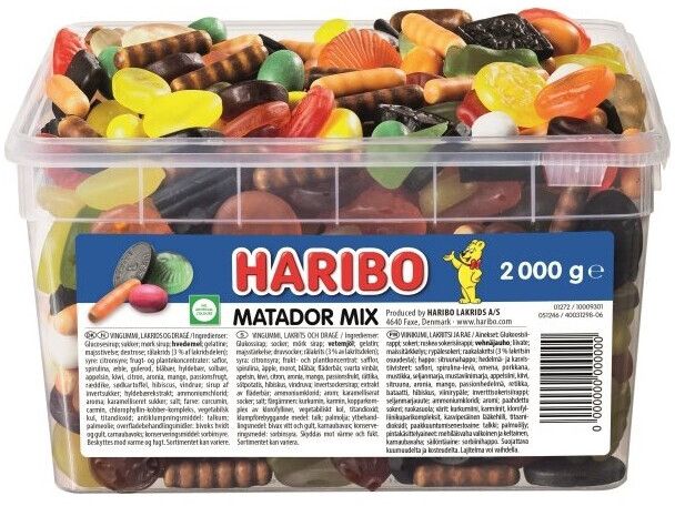 Slikmix med flere favoritter. Den klassiske slikblanding fra Haribo, hvor alle har sin egen favorit blandt labre larver, dragé æg, blandet frugtvingummi og søde lakridser. Velegnet til bland-selv slik eller anretning i lille skål til møder eller bare når du har gæster derhjemme.