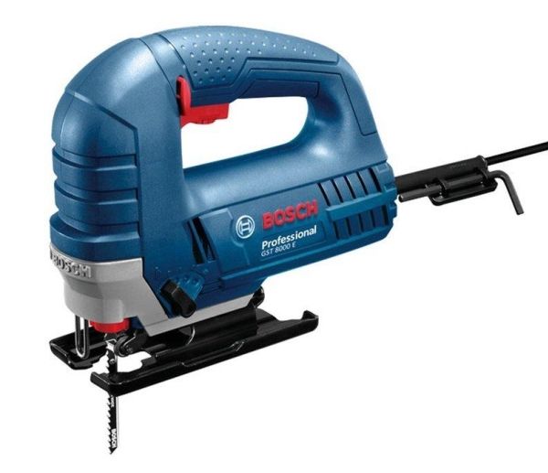 Bosch GST 8000 E Professional. Handle type: Top handle, Product colour: Black, Blue, Grey, Red, Bevel capacity (max): 45°. Idle stroke rate (max): 3100 spm, Cutting depth in wood: 8 cm, Idle stroke rate (min): 800 spm. Power source: AC, Input power: 710 W. Weight: 2.5 kg, Width: 298 mm, Height: 233 mm