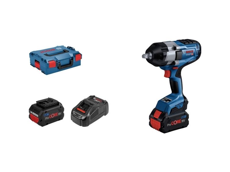 The GDS 18V-1000 Professional is the powerful 1/2" impact wrench with BITURBO Brushless technology. Its cordless freedom with outstanding power is the outcome of the high-performing brushless motor fully maximized for ProCORE18V batteries. The impact mechanism, which is designed to deliver a maximum tightening torque of 1,000 Nm and a maximum breakaway torque of up to 1,600 Nm, provides best performance for heavy duties. Three settings offer excellent control over speed/torque for high versatility.
