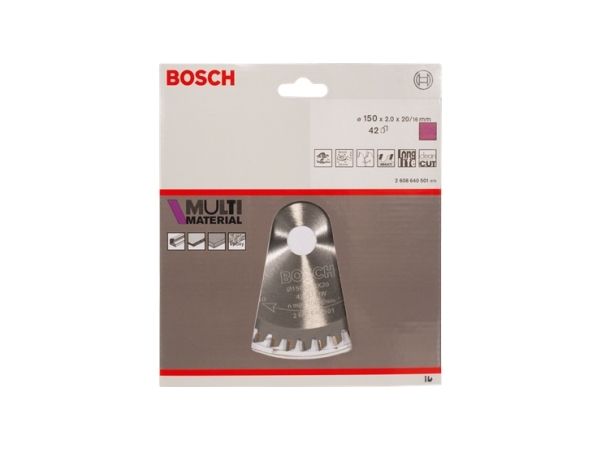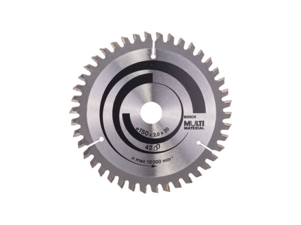 The Multi Material circular saw blade delivers powerful cuts in a wide range of materials. Its high-quality precision-ground carbide teeth make the blade robust enough for cutting various materials, while its base blade made of dimensionally stable SK5 hardened steel (> 40 HRC) ensures accuracy. Furthermore, the blade's expansion slots lower vibration during use, which dampens noise and reduces heat development. Use this saw blade in non-ferrous metals, aluminum, plastics, epoxy and wood.