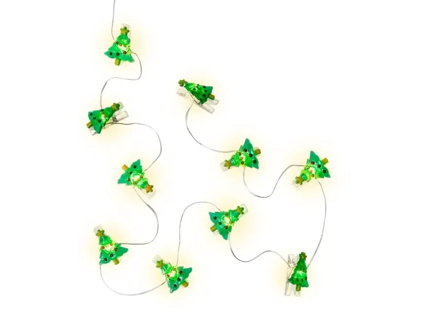 Belyste fotoklip med grønt motiv "Juletræ", mål ca. 3,4 x 2,7 cm pr. stk.