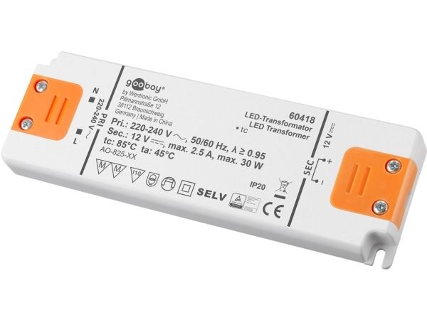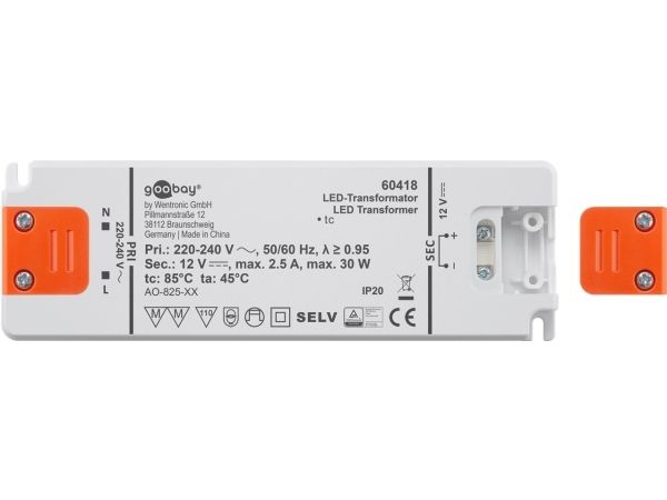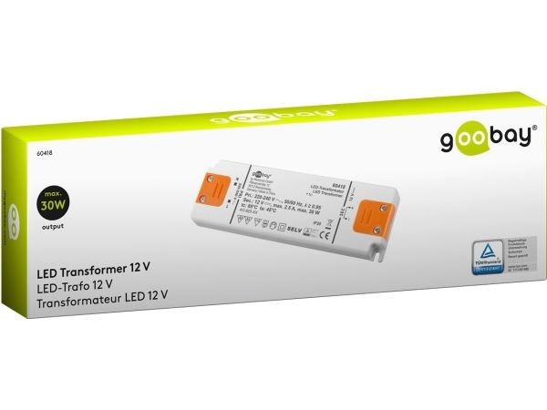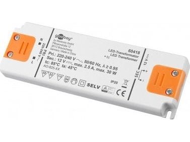 Goobay 60418, Elektronisk lystransformator, Oransje, Hvit, IP20, -20 - 45 °C, CE, RoHS Directive 2011/65/EU [OJEU L174/88-110, 01.07.2011, 30 W