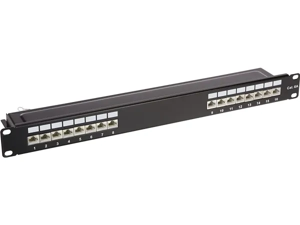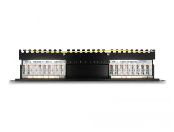 This patch panel by Delock can be used for installation in a 19'' network cabinet. 16 network cables can be installed on the LSA strips using a laying tool.