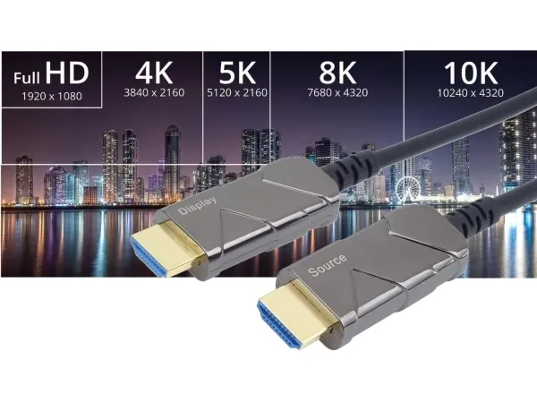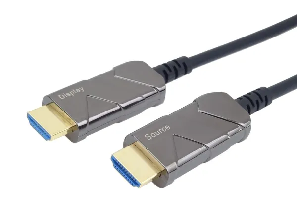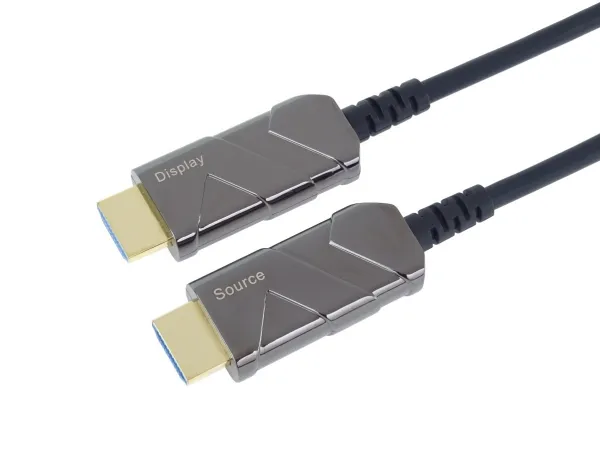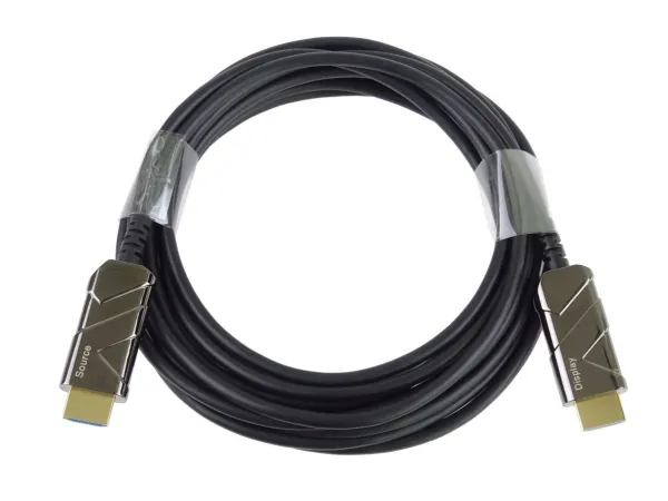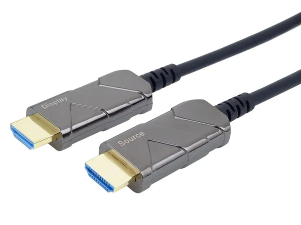 The optical Hybrid HDMI cable (fiber optic + copper) connects devices across long distances of up to 100 m without data loss – even in areas with high levels of electromagnetic radiation. Its particularly thin and light construction makes it perfectly suitable for all kinds of installations.PremiumCord KPHDM21X10. Cable length: 10 m, Connector 1: HDMI Type A (Standard), Connector 1 gender: Male, Connector 2: HDMI Type A (Standard), Connector 2 gender: Male, Connector contacts plating: Gold, HDMI version: 2.1, 3D, Data transfer rate: 48 Gbit/s, Audio Return Channel (ARC), Product colour: Black