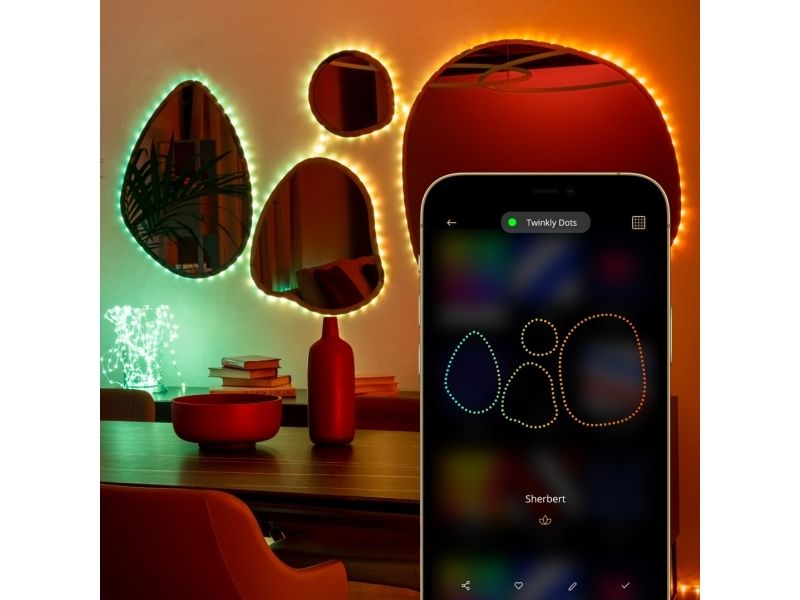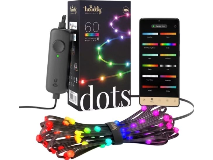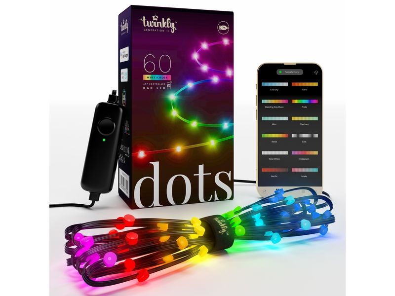 Add versatile light and color to your space with smart LED lights Twinkly Dots. Whether you want cool but subtle lighting decorations, are tricking out your gaming room, or are planning a romantic dinner, create just the right vibe with Dots. This miniaturized, flexible string of premium, app-controlled, addressable LEDs with a flat, matte head were designed for extraordinary brightness and color quality in over 16 million colors. Perfect for use both indoors and outdoors.
