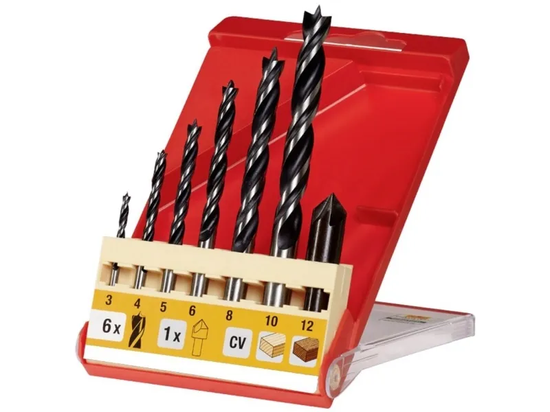 kwb CV træbor-sæt - træ-spiralbor til hårdt træ og blødt træ, 7 dele inkl. 90-graders forsænker