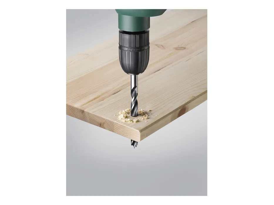 Træspiralbor, CV-stål, spånløst formet, 2-fase spiralform, til stabil kurs lige ud, Farve sort, blank spiraler, med centreringsspids og skulderfræser, til præcise markeringsfrie boringer, skaft cylindrisk, industrikvalitet, til blødt og hårdt træ.