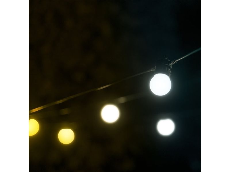 Twinkly Festoon-lyskjedene fra Ledworks gjør belysningen din mer innovativ og allsidig. Lysene er designet for både innendørs og utendørs bruk og leveres med en 3 m lang kabel og 40 matte G45 LED-pærer som kan vise 16 millioner farger. Med en levetid på 30 000 timer har disse slitesterke lyskjedene ikke bare lang levetid, men også smarte funksjoner. Lysene kan styres via Wi-Fi eller Bluetooth med Twinkly-appen, og de er kompatible med Android, iOS, OMEN Light Studio og Razer Chroma RGB. Tilpass lysopplevelsen med justering av lysstyrke, tilpassbare lyseffekter og musikkrespons (krever Twinkly Music USB-mikrofon). I tillegg er lysene utstyrt med dimmer, av/på-timer og kan stemmestyres via Alexa og Google Assistant, noe som gjør dem til et brukervennlig og allsidig valg for alle slags situasjoner. Enten du er vert for en fest eller bare slapper av hjemme, vil Twinkly Festoon-lysene gi rommet ditt livlige farger og dynamiske effekter.